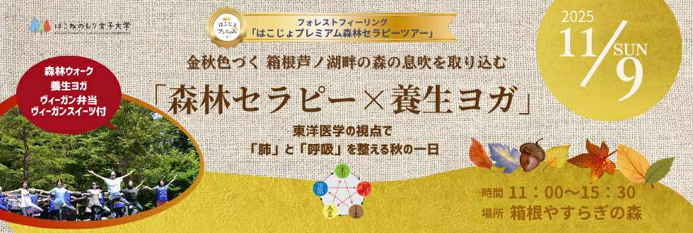 金秋色づく箱根芦ノ湖畔の森の息吹を取り込む 〜東洋医学の視点で「肺」と「呼吸」を整える秋の一日〜 森林ウォーク × 養生ヨガ × ヴィーガンランチ・スイーツ付き