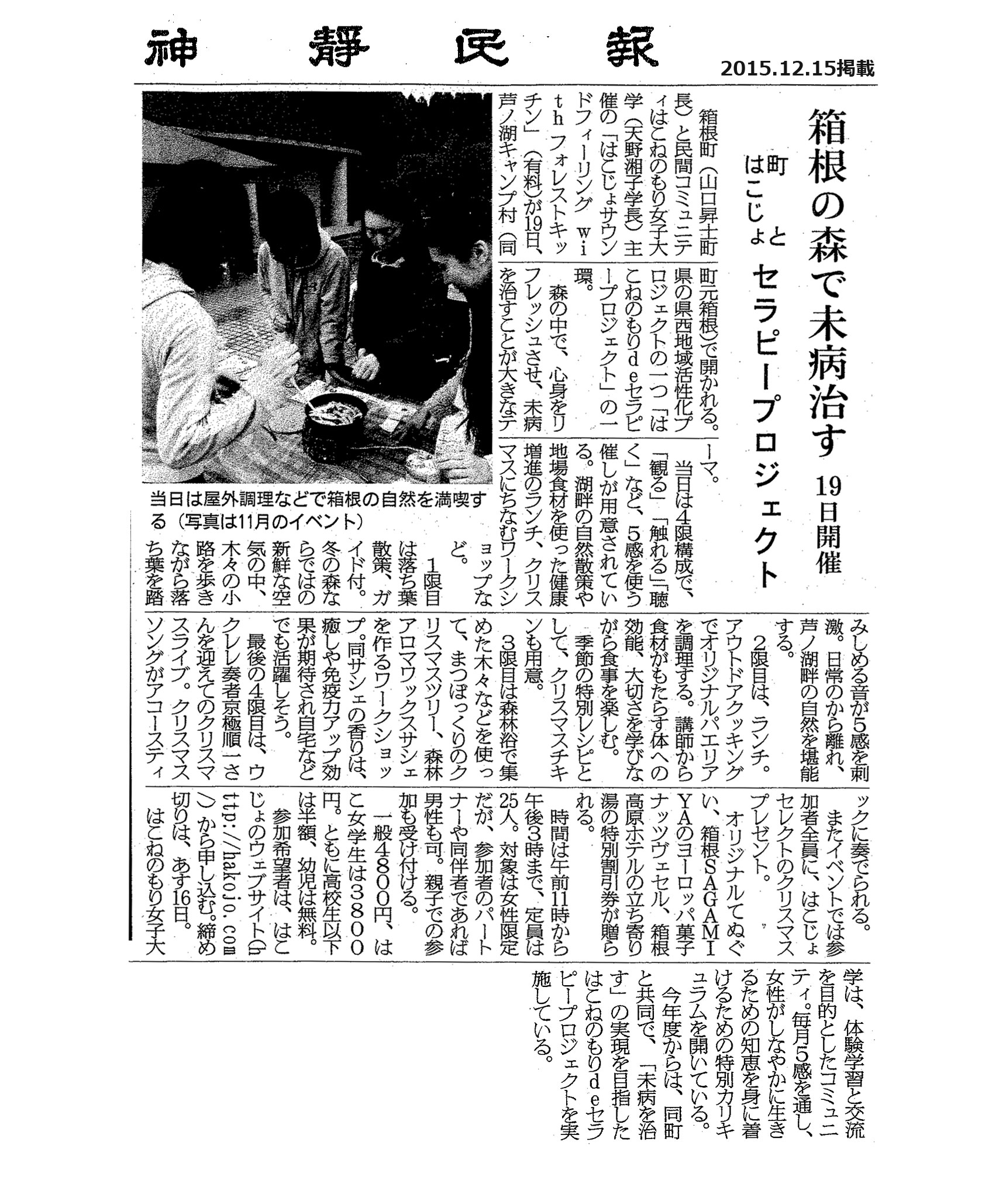 県西地域活性化事業 箱根町 × はこねのもり女子大学 『はこねのもり de セラピープロジェクト』についてのレポートをUPしました!